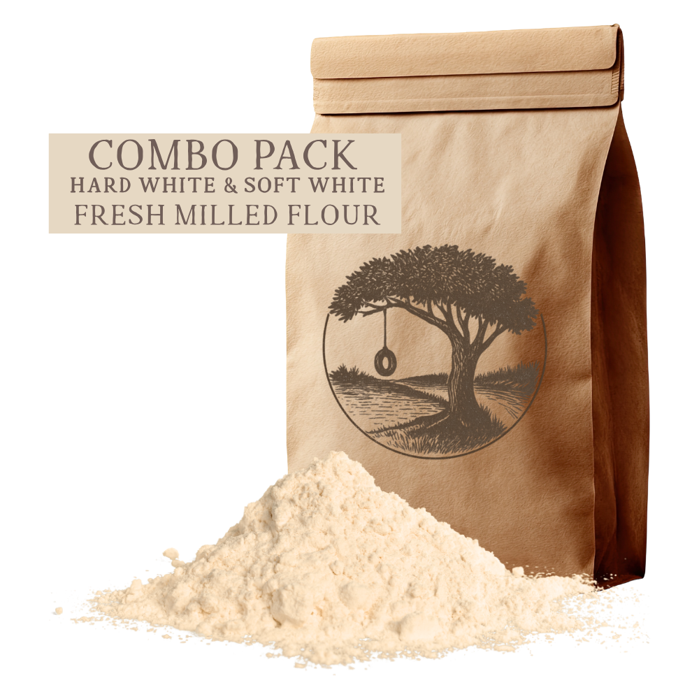 Get the best of both worlds with our Fresh-Milled Flour Combo: 3lb Hard White Wheat for bread and 3lb Soft White Wheat for pastries. Organic, fresh, and nutty.