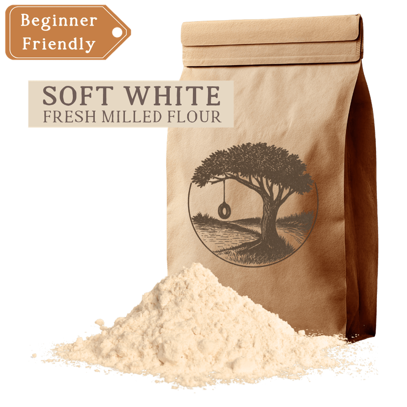 At just 8–10% protein, Soft White behaves much like a commercial pastry flour, but with the full nutritional profile of an intact whole grain, fiber, Vitamin E, B vitamins, and healthy fats from the preserved germ.
