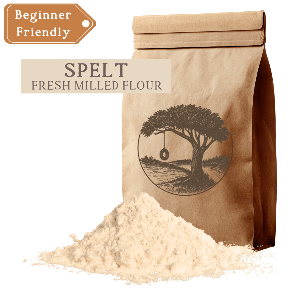 Our fresh-milled Spelt is stone-ground in small batches from non-GMO berries, keeping the whole grain intact. The result is a flour with a uniquely mellow, nutty sweetness, a beautiful creamy color, and a lighter, more delicate texture than you’d expect from a whole grain flour. It’s naturally rich in Vitamin B2, manganese, niacin, and dietary fiber.